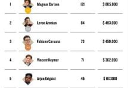 Grand Slam. Կարլսենը վաստակել է 805 հազար դոլար, Արոնյանը՝ 493 հազար