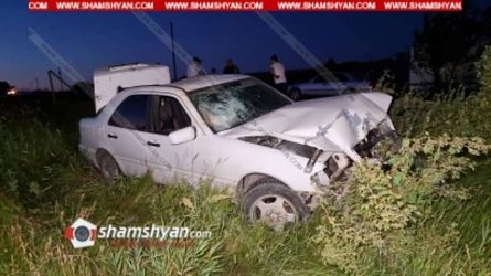 Կոտայքի մարզում Mercedes-ը տապալել է մի քանի գազասյուներ ու հայտնվել դաշտում. սկսվել է գազի արտահոսք