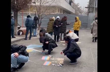 Արցախցի մի խումբ երեխաներ բողոքի ստեղծագործական ակցիա են իրականացնում ՄԱԿ-ի հայաստանյան գրասենյակի առջև
