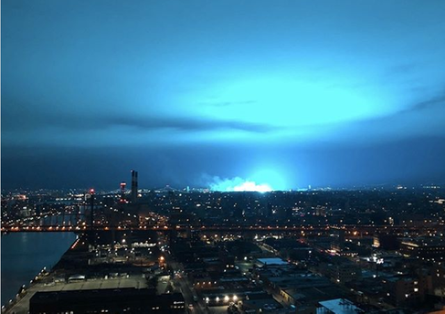 Небо Нью-Йорка озарил непонятный голубой свет