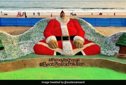 В Индии появилась скульптура Санта-Клауса из 10 тыс. пластиковых бутылок