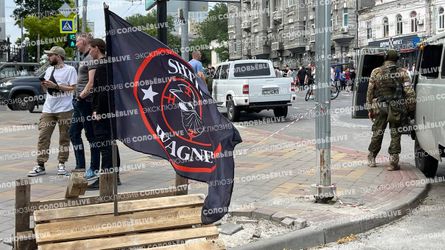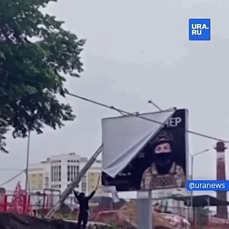 В Москве демонтируют плакат с призывом вступить в ЧМК «Вагнера»