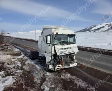 Արագածոտնի մարզում կցորդիչով բեռնատարը դուրս է եկել երթևեկելի գոտուց, բախվել ձնակույտին և հողաթմբին