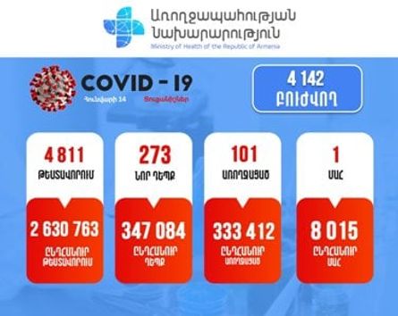 Հայաստանում մեկ օրում հաստատվել է կորոնավիրուսի 273 դեպք