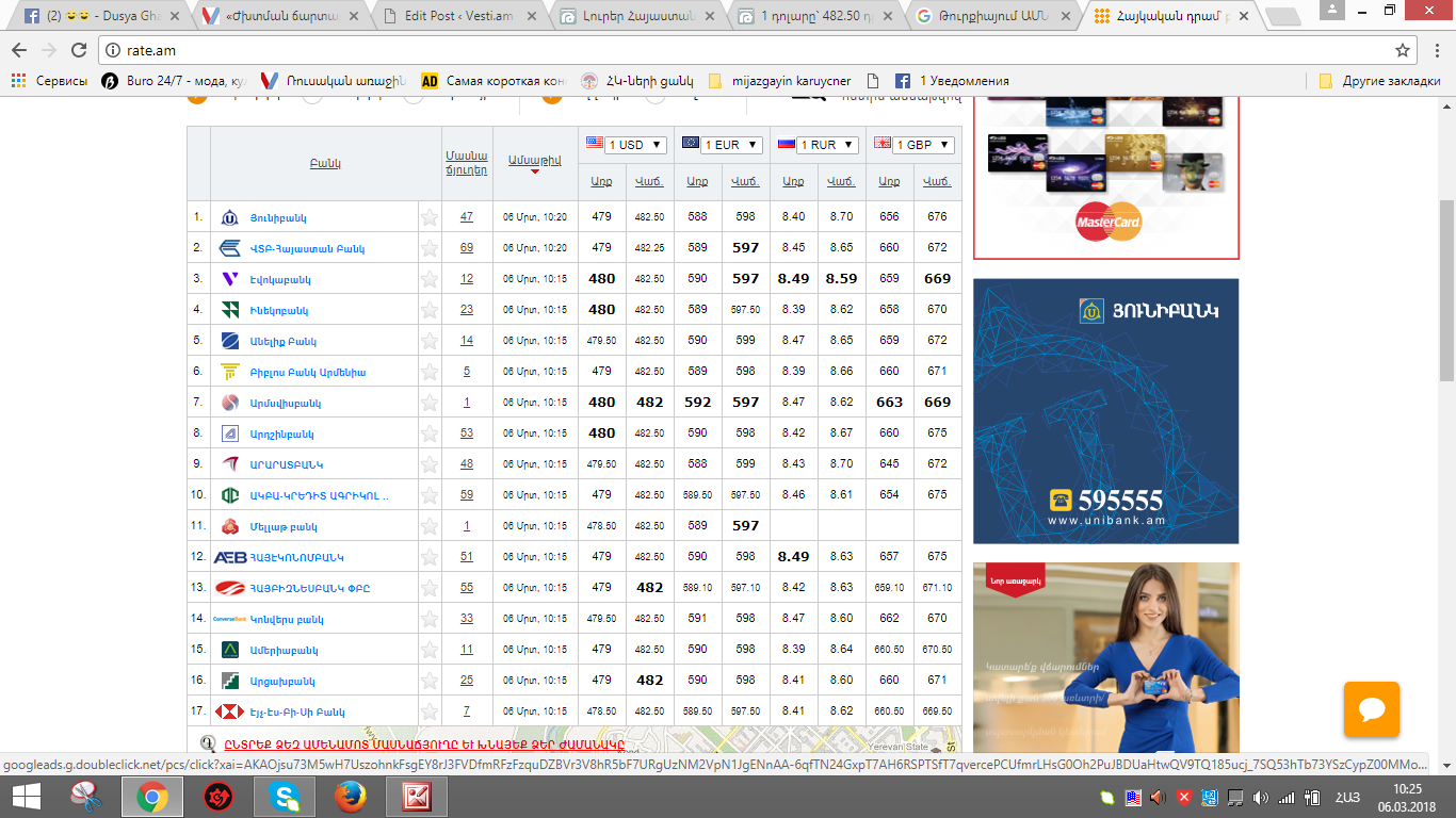 Rate.am-ը ներկայացնում է Հայաստանի բանկերի կողմից գնվող և վաճառվող արտարժույթների փոխարժեքները մարտի 6-ի դրությամբ:
