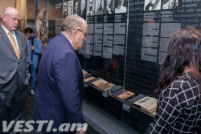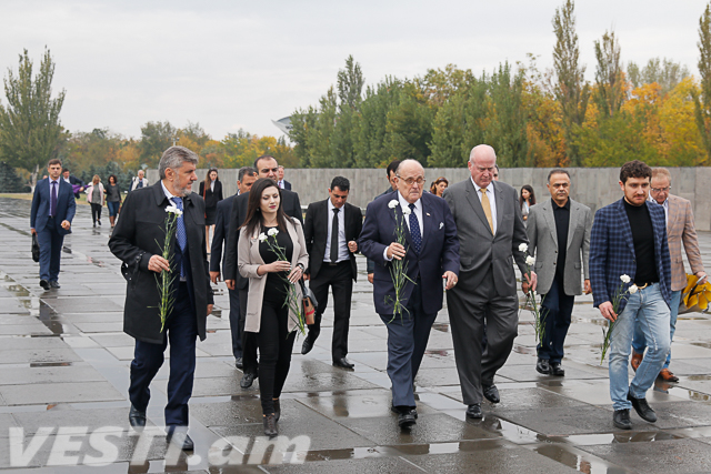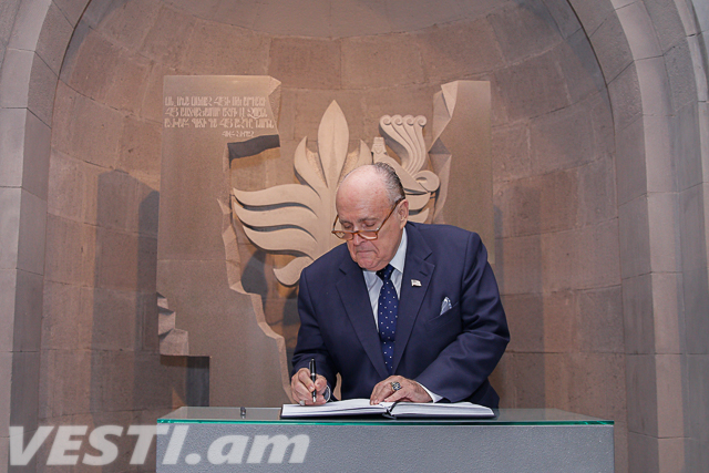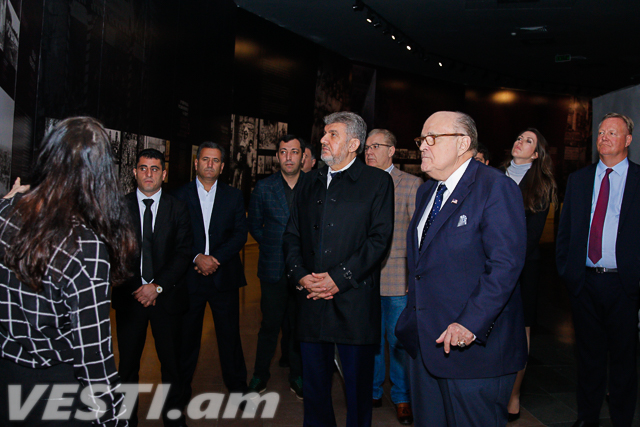 Они побывали в Музее-институте Геноцида, где ознакомились с фактами Геноцида армян. Джулиани сделал запись в Книге почетных гостей.