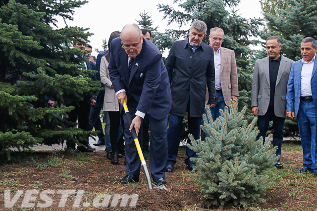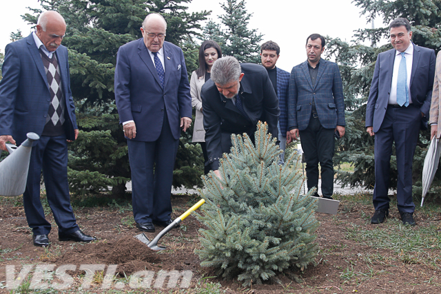 Советник президента США по линии кибербезопасности, бывший мэр Нью-Йорка Рудольф Джулиани и председатель Союза армян России и Всемирного армянского конгресса, посол доброй воли ЮНЕСКО Ара Абрамян посетили мемориальный комплекс «Цицернакаберд».