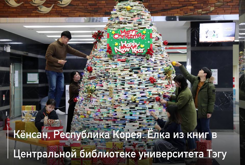 Кенсан. Республика Корея. Елка из книг в Центральной библиотеке университета Тэгу