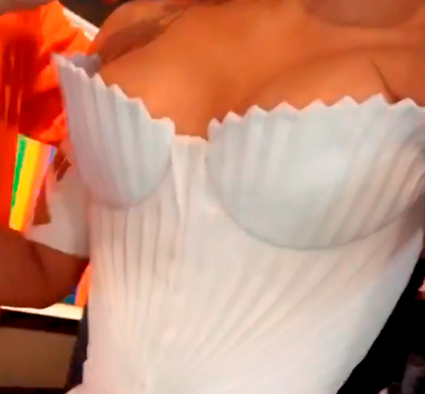 Чуть позже она предстала в другом образе. На этот раз она сделала ставку на белое мини-платье с корсетом и откровенным декольте, которое дополнила двумя белыми браслетами.