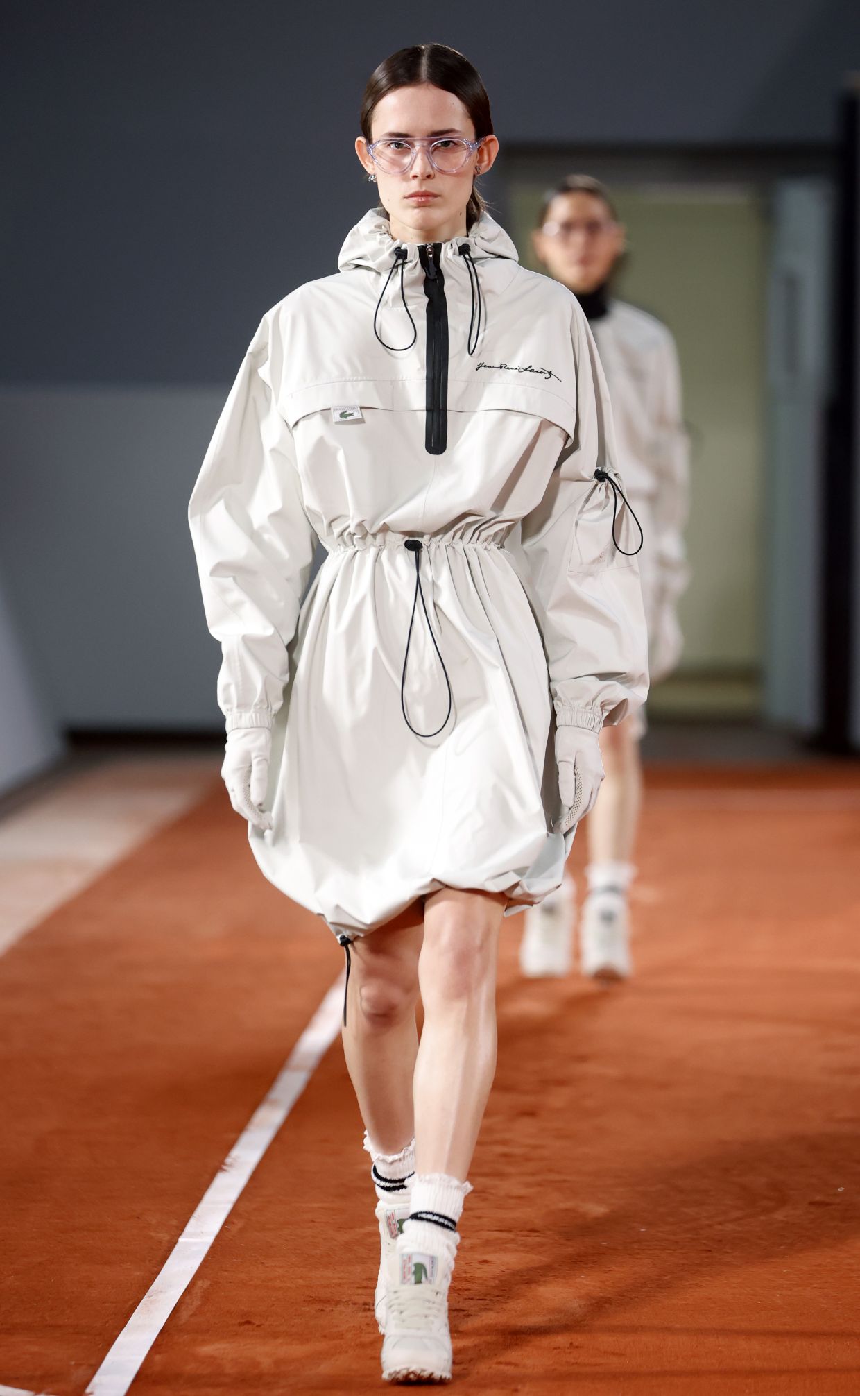 Ткани из области экипировки для альпинизма, беговых костюмов и скоростных видов спорта появляются в платьях, пальто, костюмах и даже в вечерних образах. Спорт становится эстетикой будущего.